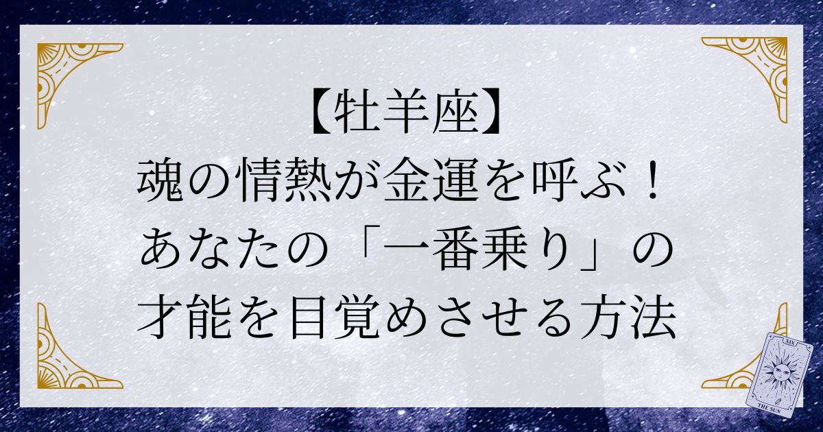この牡羊座の持つ「情熱」と「行動力」こそが、あなたの金運を爆発的に高める、最大の武器なのです。