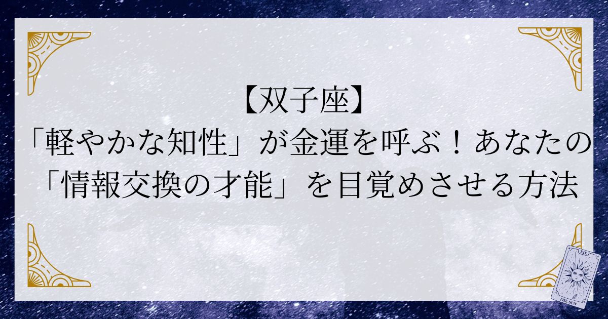 この双子座が持つ「スピード感のある情報収集能力」と「誰とでも繋がれる社交性」こそが、あなたの金運を活性化させる鍵なのです。